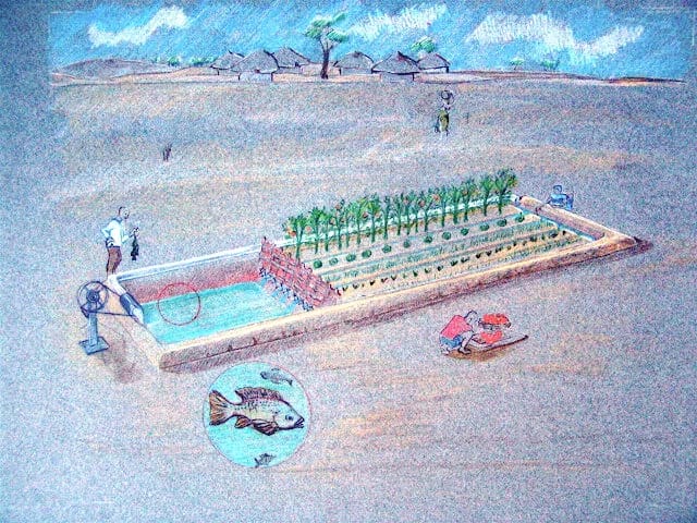 tl;dr; iAVs is a low-cost, low-tech food production system ideal for developing nations. It uses a sand-filled grow bed as a biofilter, draining into a fish tank. Nutrient-rich water is cycled between the two, creating a symbiotic relationship that produces fish and vegetables with minimal water use (up to 300x more efficient than traditional methods). The system can be built with readily available materials and adapted to various power sources.